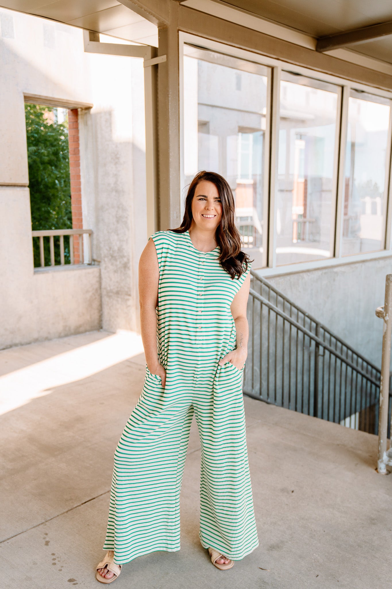 Green Stripe Oversized Jumpsuit