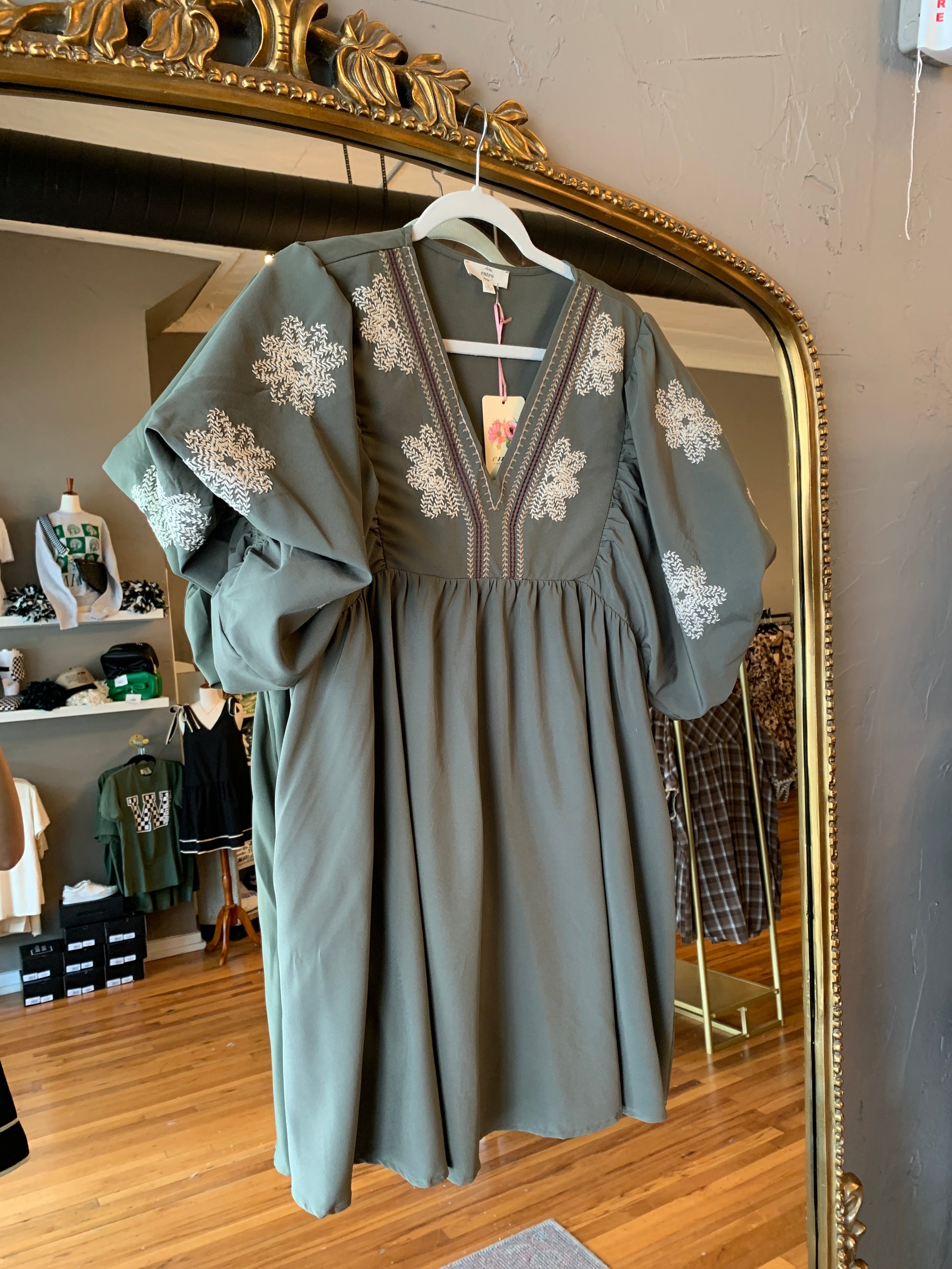 Olive Embroidery Dress